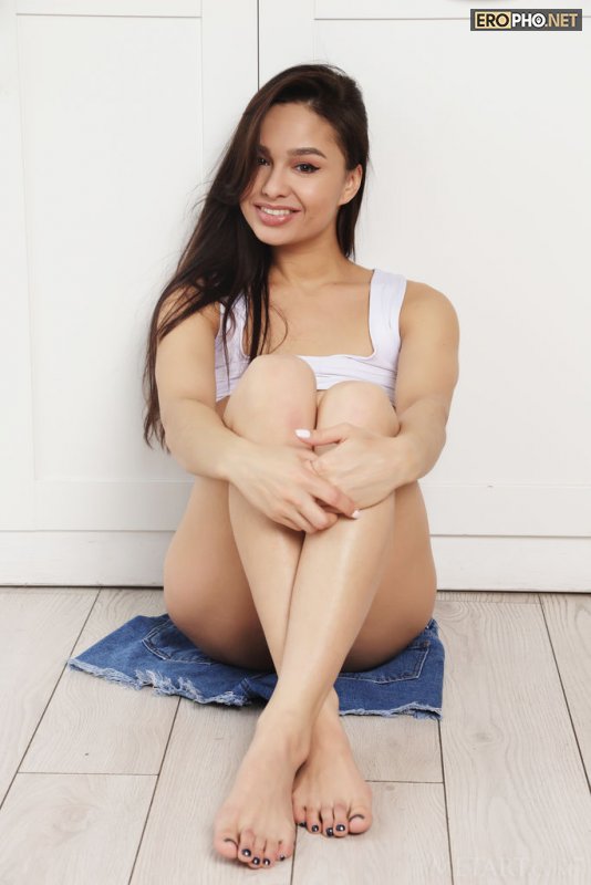 Желая поднять мужу настроение перед работой, молодая красивая жена стала баловать любимого стриптизом прямо на кухне. Стянув короткие джинсовые шорты, улыбчивая брюнетка стала скромно прикрывать мокрую письку белой майкой. Осмелев, обнаженная девушка с милой мордашкой присела на высокий табурет и начала весьма энергично трясти красивыми ягодицами. От всех этих действий женская розочка не только промокла, но и напряглась. Перебравшись на пол. Стройная цыпочка Astrid Herrara перебралась на пол, устроилась на боку и стала эротично массировать ягодицы и розовое анальное отверстие.Информация