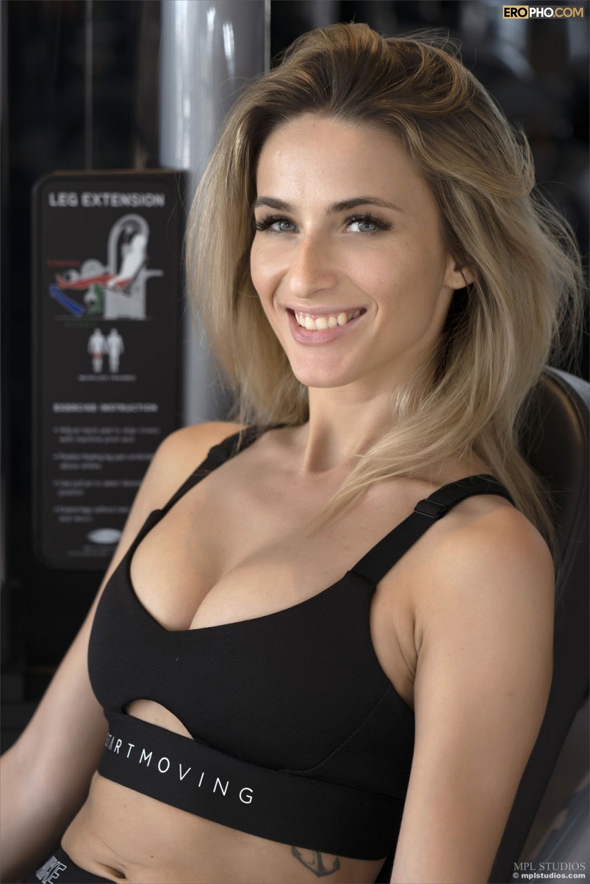 Придя на тренировку в обтягивающей черной одежде, спортивная блондинка Cara Mell взобралась на тренажер, и принялась весьма эротично разминаться перед тренером. Милашка настолько резво двигала ягодицами и трясла сиськами, что у самца вскоре поднялся конец. Видя насколько сильно завелся зритель, русая цыпочка попила водички, а потом и вовсе позвала мужчину к себе в дом. Стоило только телочке войти в спальню, как она тут же разделась, и показала классные сиськи, и слегка заросший лобок. Заняв непристойную позу, разгоряченная шалунишка принялась довольно бодренько трясти сочными булочками.