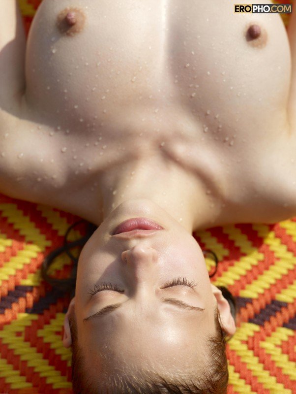 Тщательно выбрив лобок и попку, стройная красотка с шикарными сиськами побрела загорать во двор. Устроившись на спинке, девушка модельной внешности стала позировать перед своим любимым человеком. Тот тем временем не растерялся, взял в руки фотоаппарат и начал делать откровенные ню фото. Взглянув перцу в глаза, сексуальная девушка эротично себя ощупала, привстала и принялась игриво двигать дойками. Потрусив прелестями, шалунишка улеглась на спину и продолжила загорать. Вскоре возбужденный чудак убрал в сторону фотоаппарат и принялся мастурбировать. Спустив густой струей, чувак залез в воду и принялся мыть слегка вспотевшие яйца.