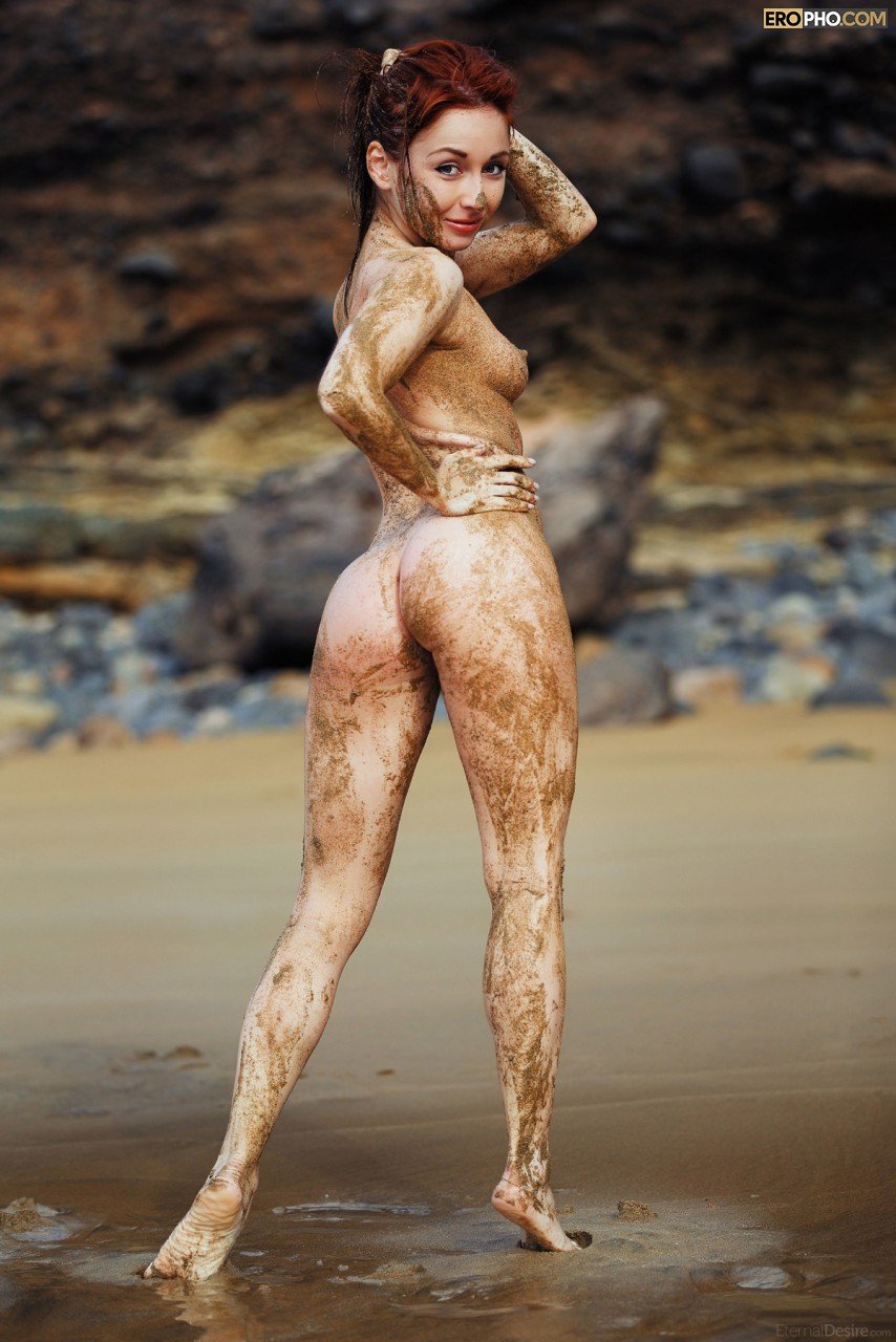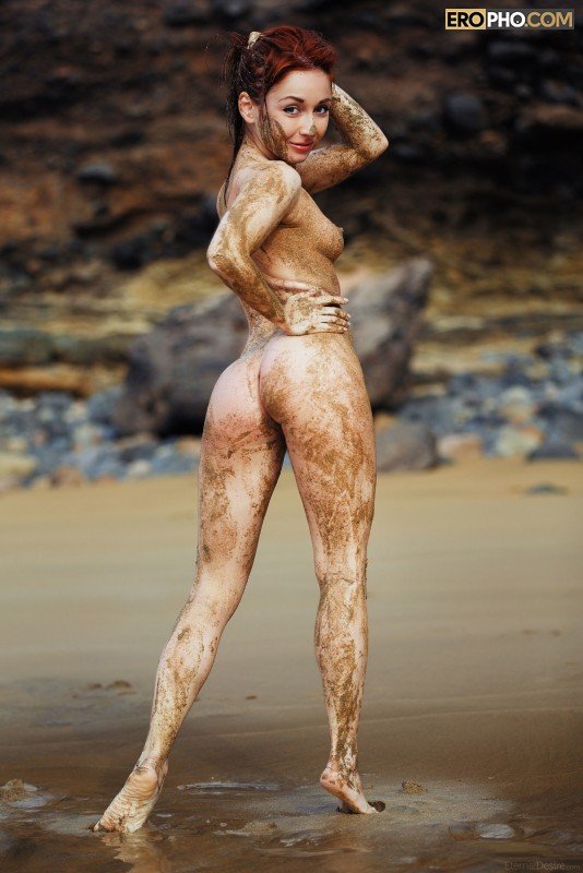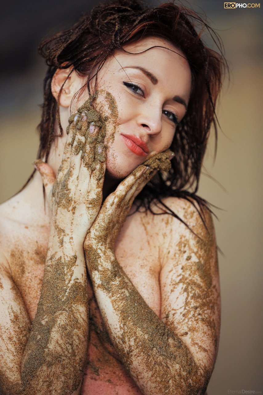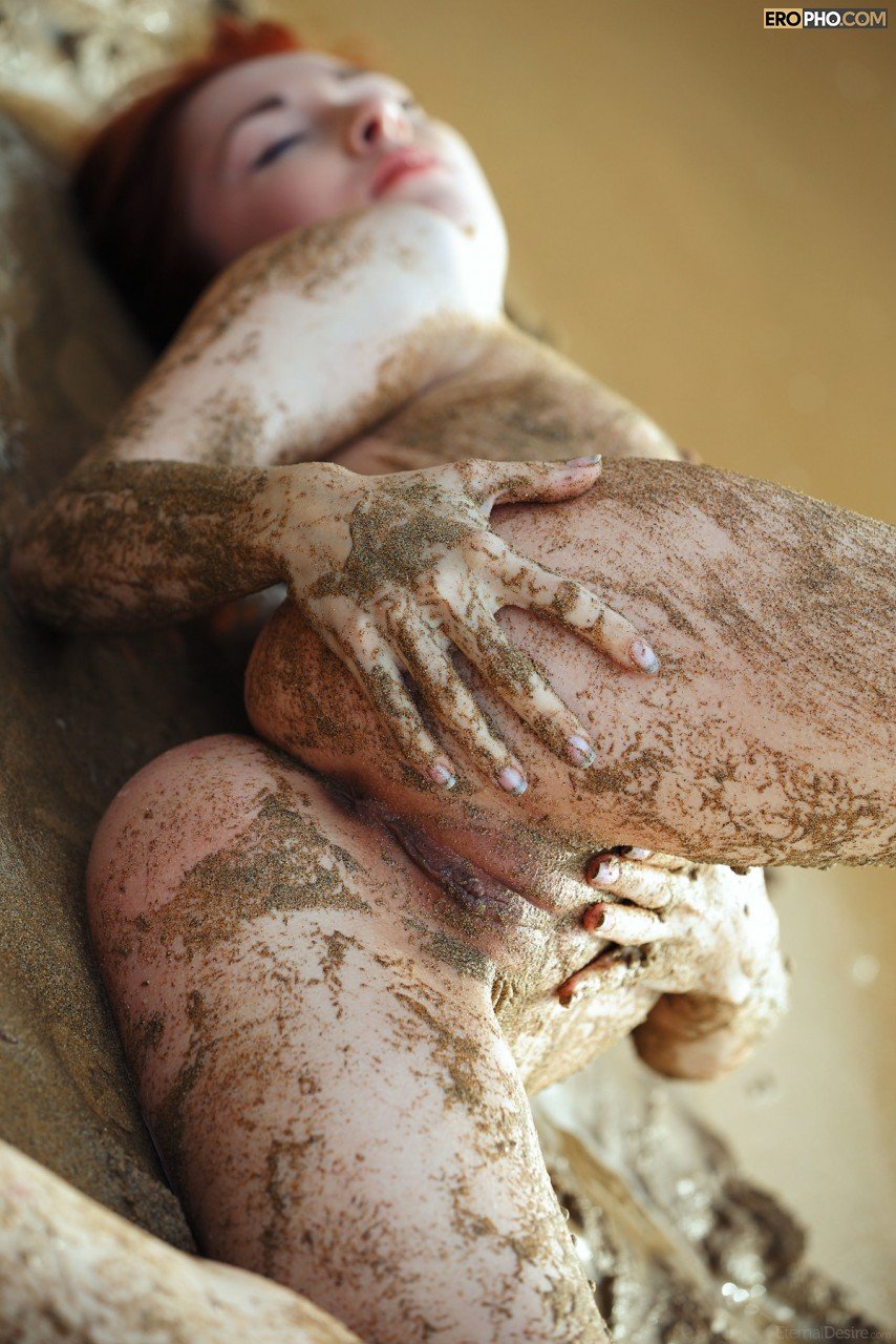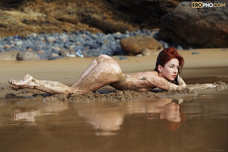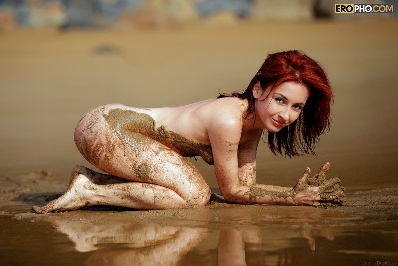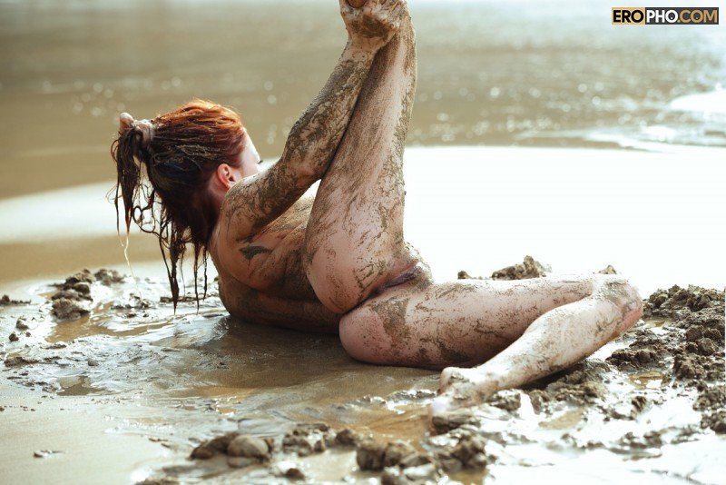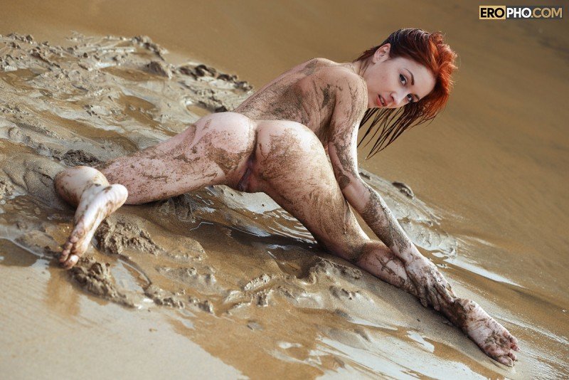 Веселая рыжеволосая проказница выехала с другом за город и принялась принимать грязевые ванны. Красивая барышня с прикольной стрижкой на лобке пару минут двигала булками перед самцом, а затем начала почесывать половые губки. Вскоре голая шалунишка улеглась в лужу и стала в ней купаться. Как не странно, но от всего этого тян возбудилась, а также очень сильно завела партнера с фотокамерой. Дамочка купалась в грязи и при этом весьма активно натиралась пальцами соски. Перепачкавшись с головы до ног, порочная стерва наклонилась и приступила теребить сильно напряженный розовый клиторок.