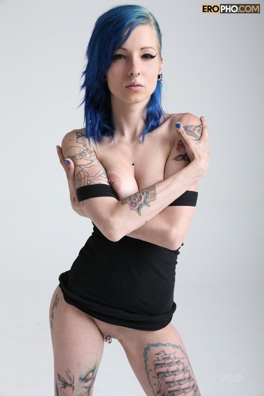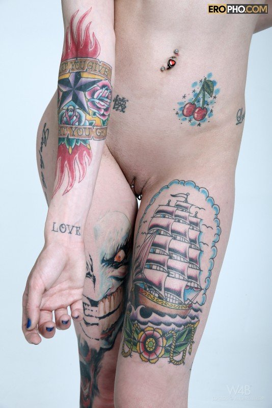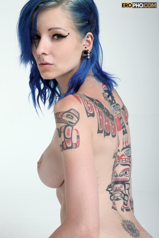 Своим внешним видом модная татуированная студентка очень сильно впечатлила бывалого фото оператора. Стянув короткую майку, дрянная бабенка с прикольным цветом волос взобралась на белый квадрат и принялась позировать. Сексуальная девушка похвасталась не только цветными тату, но и показала пирсинг на половых губах и клиторе. Ощупав груди и задницу, тян наклонилась и приступила мастурбировать перед объективом. Страстная девушка с классными сиськами лихо дрочила, но и бодренько теребила пальцами крупные сосочки. От всего этого мужик не только возбудился, но и смог спустить.