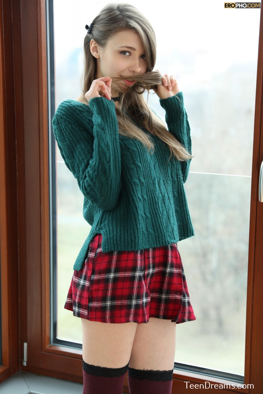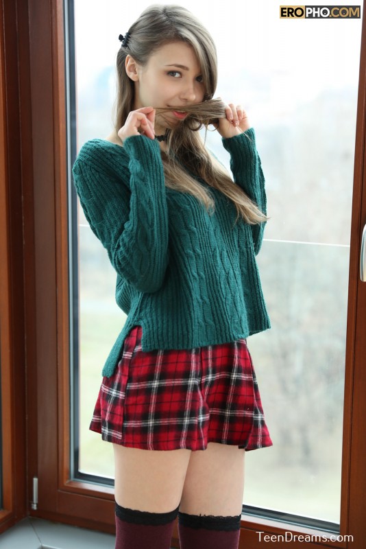 Милая украинская студентка Mila Azul в клетчатой юбочке и промокших от тоски, по мускулистому парню из группы, трусиках, откровенно показывает свои сладкие дырочки перед камерой. Вначале, эта кокетливая шлюшка задирает свой вязанный свитер и демонстрирует шикарные дойки с торчащими сосками. А после, она избавляется от своей юбки с трусами и, расположившись на широком подоконнике, эротично массирует половые губы ловкими пальцами. Легкая мастурбация красивой и молодой девушки, что так пылко доводит себя до оргазма, обязательно придется по вкусу многим ценителям женской красоты и настоящей невинной природы молоденьких студенток!Информация
