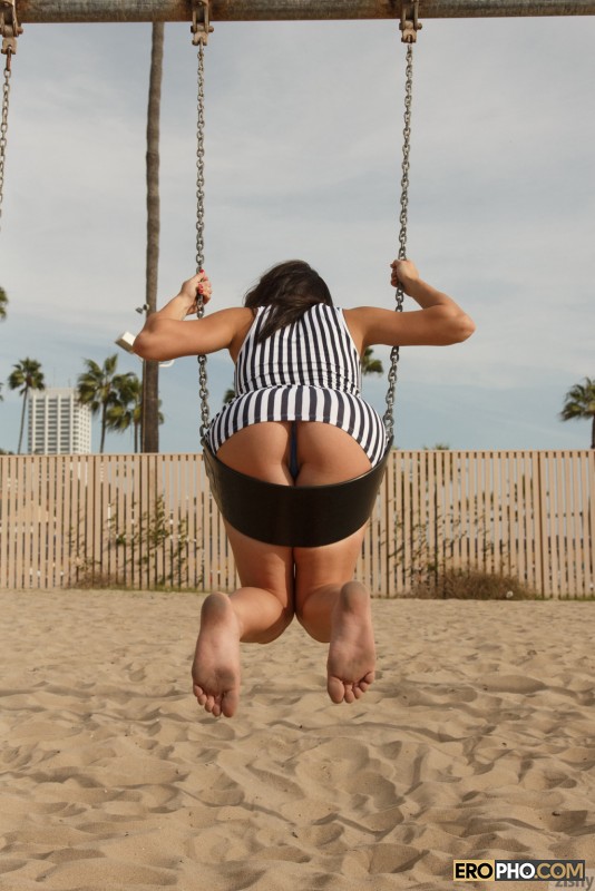 Поправив короткое полосатое платье, черноволосая проказница Leah Gotti отправилась на пляж. Разгуливая босиком по песку, шалунишка пристально смотрела на совершенно незнакомых мужчин и эротично двигала перед ними круглой попкой. Покатавшись на качелях, проказница задрала свой вызывающий наряд и начала показывать модные синие трусики, которые плотно прижимались к письке и попке. Спустив белье, девушка выставила напоказ выбритый лобок и сочную розовую попку. Подвигав булочками, сладкая чертовка зашла в воду и стала мыть ступни. Прогулка так сильно возбудила леди, что ей захотелось уединиться и подрочить пипку в тихой домашней обстановке.Информация