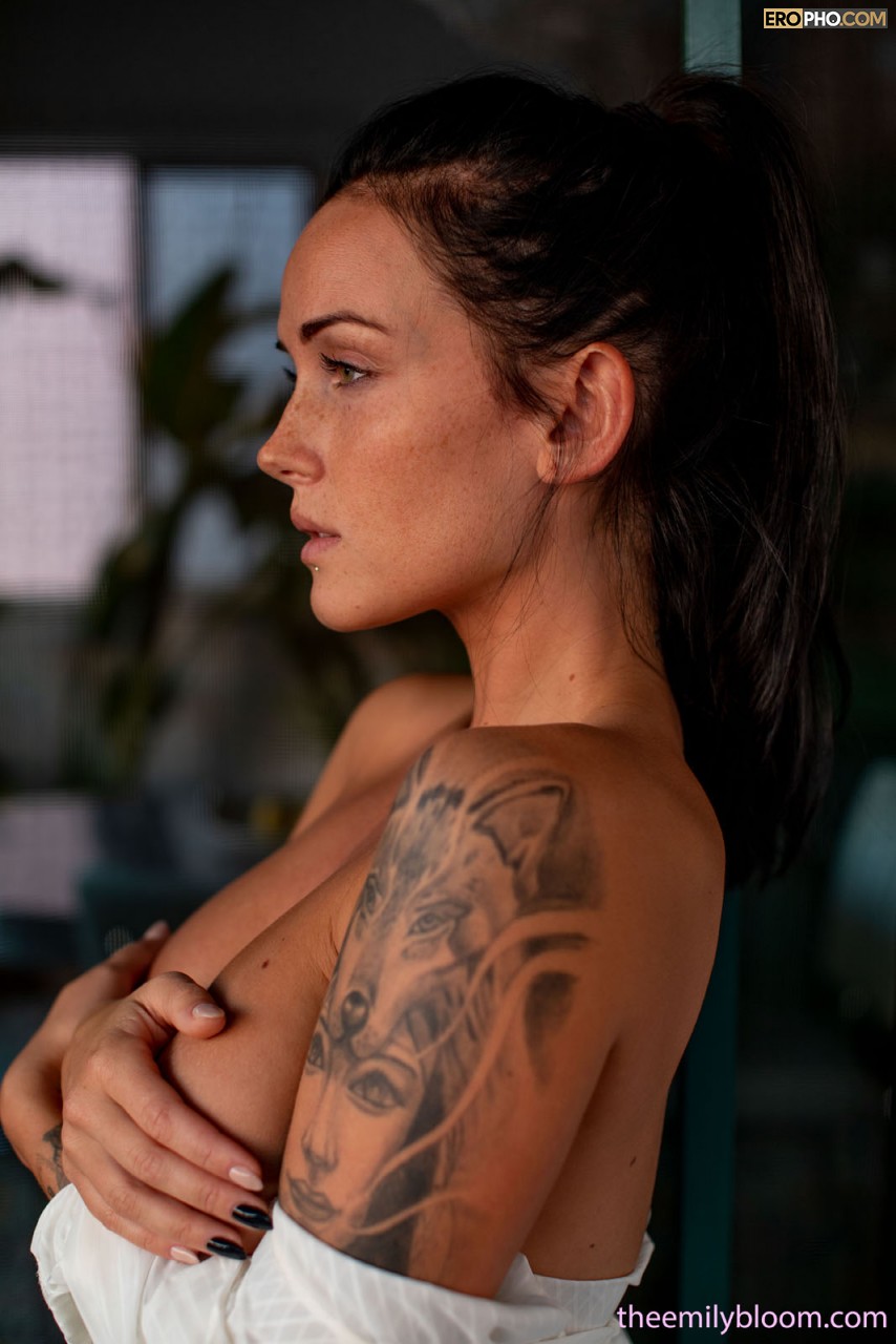 Оставив на теле лишь черное боди, знойная татуированная брюнетка Kayla Lauren заклеила сосочки черным скотчем, и стала позировать перед клиентом. Подняв самцу настроение и половой орган, деваха стала мацать сиськи. От всего этого женская пися не только промокла, но и обильно потекла. Обнажившись, леди накинула на стройное тело короткую белую рубашку, и начала позировать возле окна. Вместо того, чтобы чпокнуть стерву хоть в какую-нибудь дырочку, чувак стал просто массировать яйца и пускать слюни. Удовлетворив мажора стриптизом, чертовски горячая шкура забрала свой гонорар, и отправилась на интимное свидание к неграм.