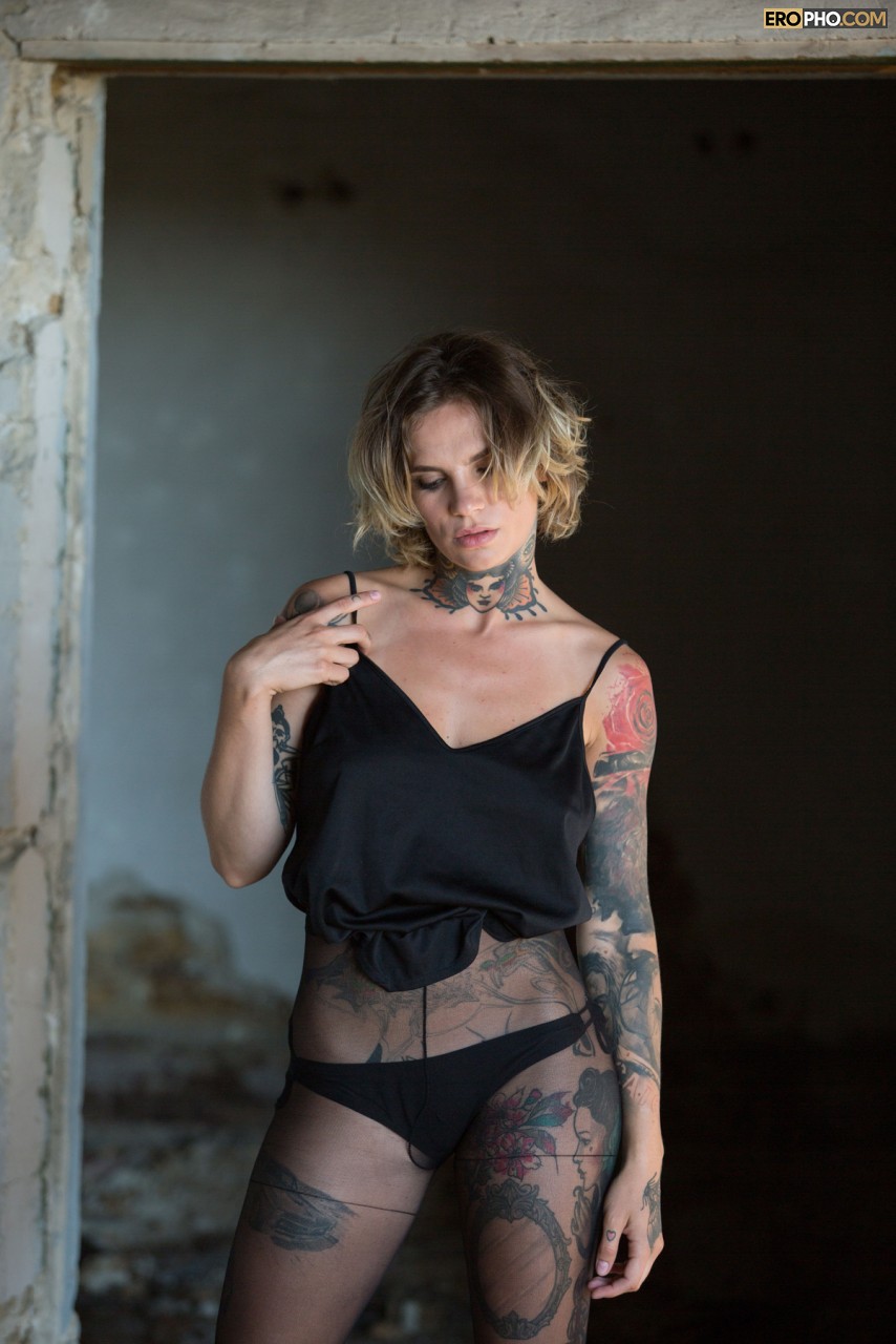 Модная девица с многочисленными татуировками по всему телу заманила бомжа в заброшенное здание, и стала баловать типа стриптизом. Через тонкую ткань капроновых колготок мужик смог рассмотреть насколько же классная у дамы писька и попочка. Важно покрутившись перед грязным самцом, озабоченная телочка положила руки на груди и принялась их массировать. Сильно возбудившись, дрянная бабенка без трусиков порвала колготки и стала шлепать ладошкой по мокрой шмоньке. Голая блудливая чика в рваном капроне так старалась, что счастливому зрителю удалось несколько раз замечательно кончить струями на стену.Информация