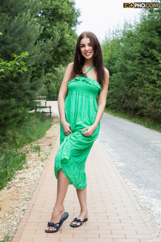 Устав от скучных занятий в колледже, соблазнительная студентка модельной внешности Evita Lima отправилась гулять по улицам. Встретив на дороге привлекательную семейную пару, длинноволосая брюнетка с классными глазками тут же начала с ними заигрывать. Взбодрив незнакомцев интимными байками, соблазнительная леди задрала подол и показала выбритый лобок и классную задницу. Погладив прелести, порочная леди полностью обнажилась в публичном месте, и вскоре начала разводить в стороны сочные ягодицы. Показав давно не невинный шоколадный глаз, студентка предложила шалунам групповой разврат.